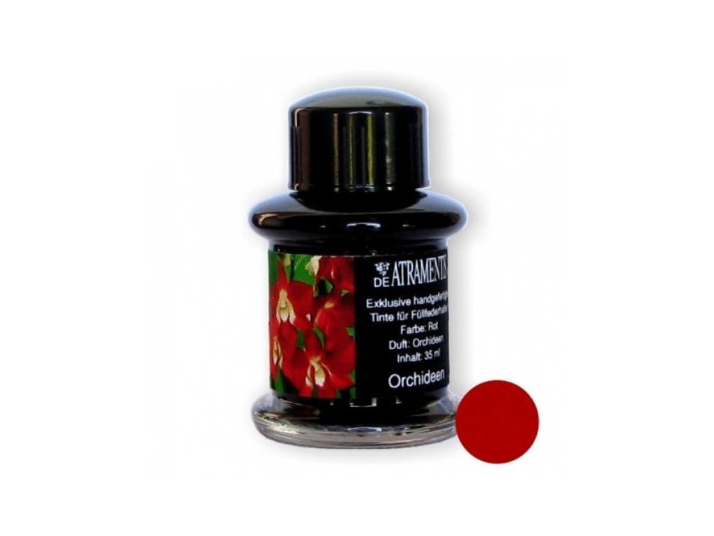 Exklusivní ručně vyráběný inkoust De Atramentis v červené barvě. S vůní orchidejí. Dodáváno v 45 ml skleněné lahvičce.