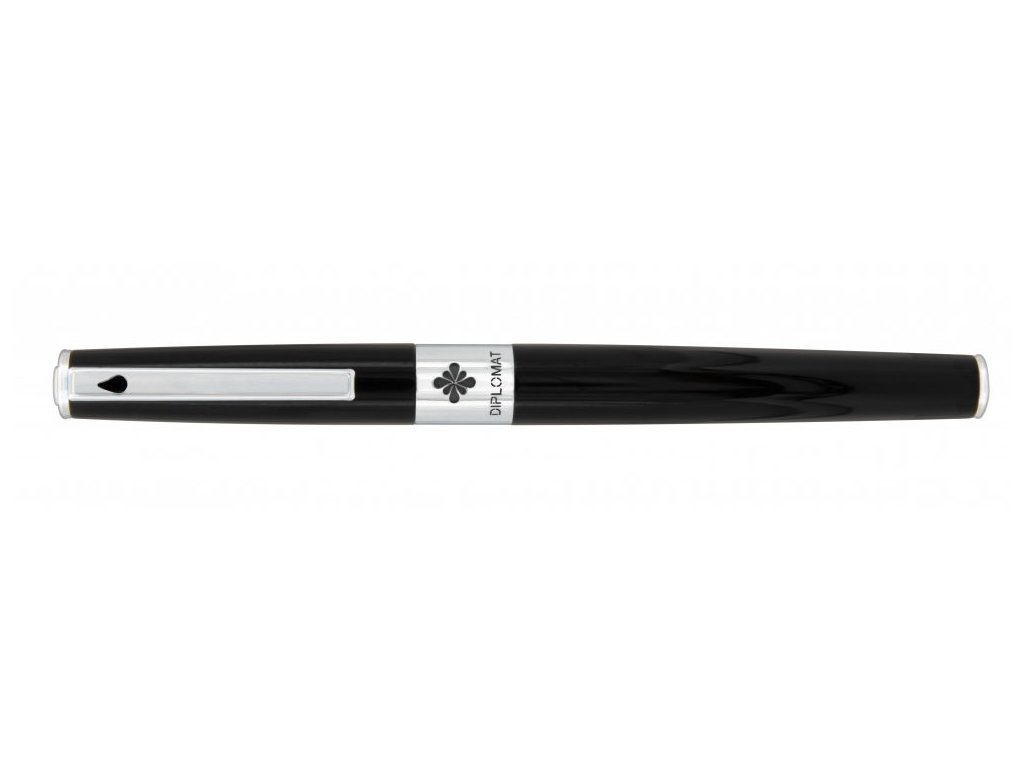 Diplomat CLR Black Laquer je moderní leskle černě lakované plnicí pero s pochromovanými doplňky a pěti vyměnitelnými barevnými prstenci. Díky nim je pero možné barevně doladit dle svého vkusu nebo si označit, jaký inkoust je v peru aktuálně používán. Prvotřídní hrot je vyrobený z nerezové ocele. Víčko je nasazovací. Pero je vybavené systémem na bombičky i na plnění konvertorem. Konvertor je součástí balení, bombičky je nutné v případě zájmu dokoupit. Dodáváno v luxusní dárkové krabičce Diplomat.Doplňkové parametry