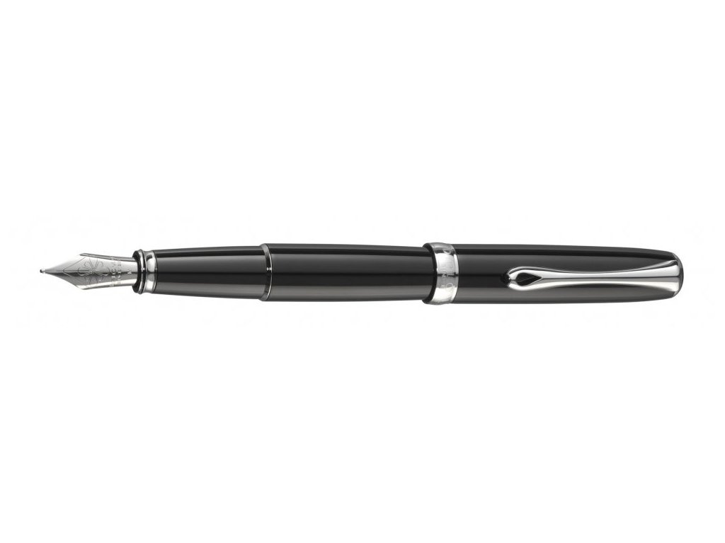 Kvalitní celokovové plnicí pero Diplomat Excellence s vícevrstvým leskle černým lakem a a s pochromovanými doplňky leštěné do vysokého lesku. Elegantně tvarovaný a odpružený klip. Perfektní vyvážení pro pohodlný pocit při psaní. Prvotřídní hrot je vyrobený z nerezové ocele. Víčko je nasazovací. Pero je vybavené systémem na bombičky i na plnění konvertorem. 2 modré bombičky i konvertor jsou součástí balení. Dodáváno v elegantní dárkové krabičce.Doplňkové parametry