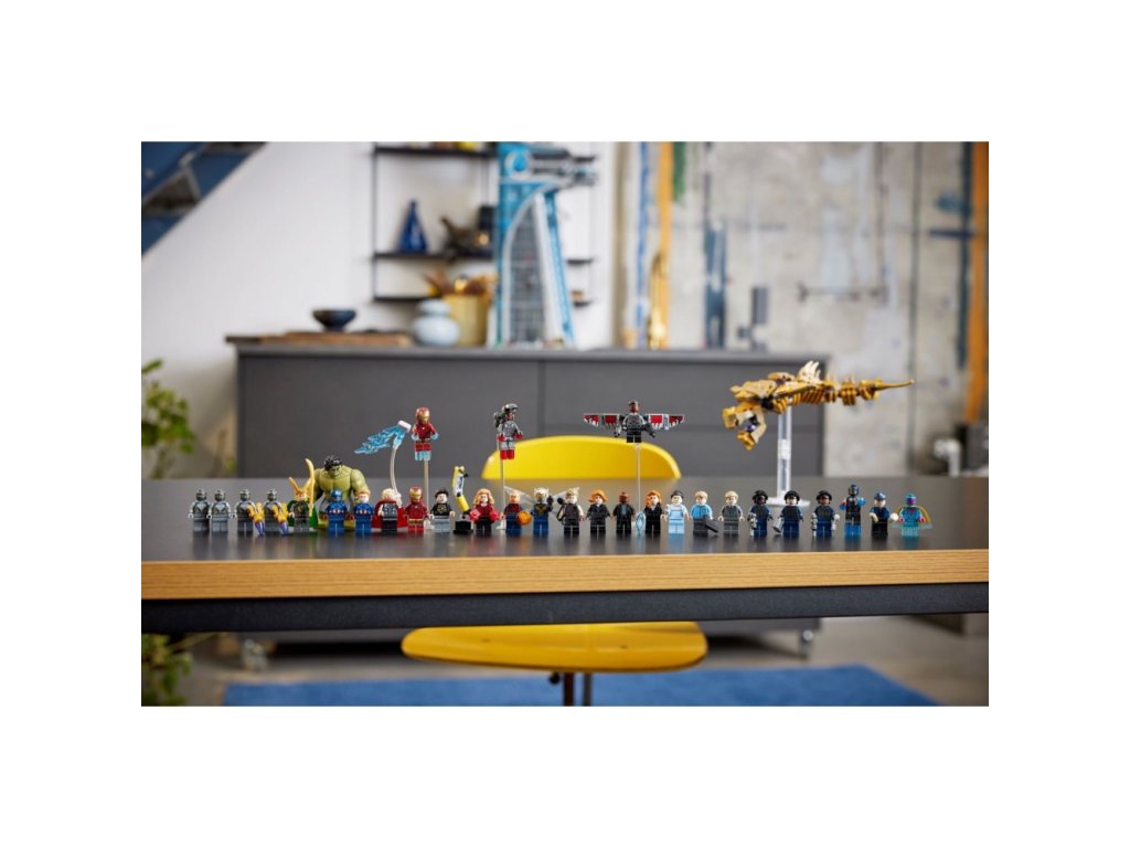 Model se skládá z 5201 dílků a měří přes 90 cm a až po střechu je zaplněn nezapomenutelnými scénami a oblíbenými postavami z MCU. Jednu stranu a střechu budovy lze odejmout pro snadný přístup do interiéru, kde fanoušci najdou spoustu detailů a doplňků, které jsou plné odkazů na filmy z této ságy. Leviathan, Quinjet a 2 vozy Chitauri jsou připraveny na bitvu.
