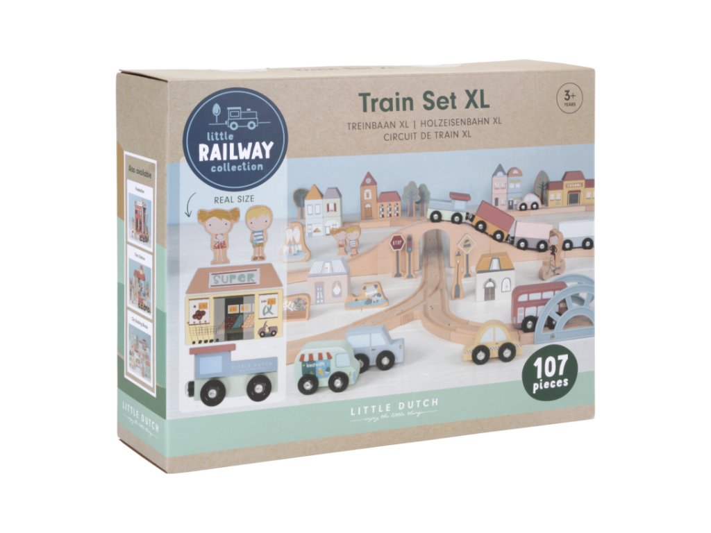 Vydejte se s vaším dítětem na nekonečné dobrodružství s dřevěnou vláčkodráhou XL od Little Dutch. Naskočte na vlak, autobus nebo do auta a prozkoumejte město. Tato sada s více než 100 díly nabízí obrovskou variabilitu a můžete tak s vaším dítětem vymýšlet nové a nové kombinace. Každá dřevěná figurka má na obou stranách krásné ilustrace.