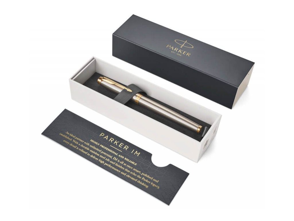 Pero I.M. Brushed Metal GT má broušené mosazné tělo s lakovanou povrchovou úpravou v šedé barvě. Doplňky jsou pokovené zlatem. Hrot zdobený jemnou rytinou je vyrobený z nerezové oceli. Víčko je nasazovací. Pero je vybavené systémem na bombičky i na plnění konvertorem. Standardně je v balení 1 modrá bombička, konvertor je nutné v případě zájmu dokoupit. Dodáváno v elegantní dárkové krabičce. Nutno zvolit hrot: F – slabý – mírným tlakem vytváří jemnou stopu, je oblíbený hlavně u žen M – střední – průměrný tlak a šíře stopy při psaní, vhodný pro většinu uživatelůDoplňkové parametry