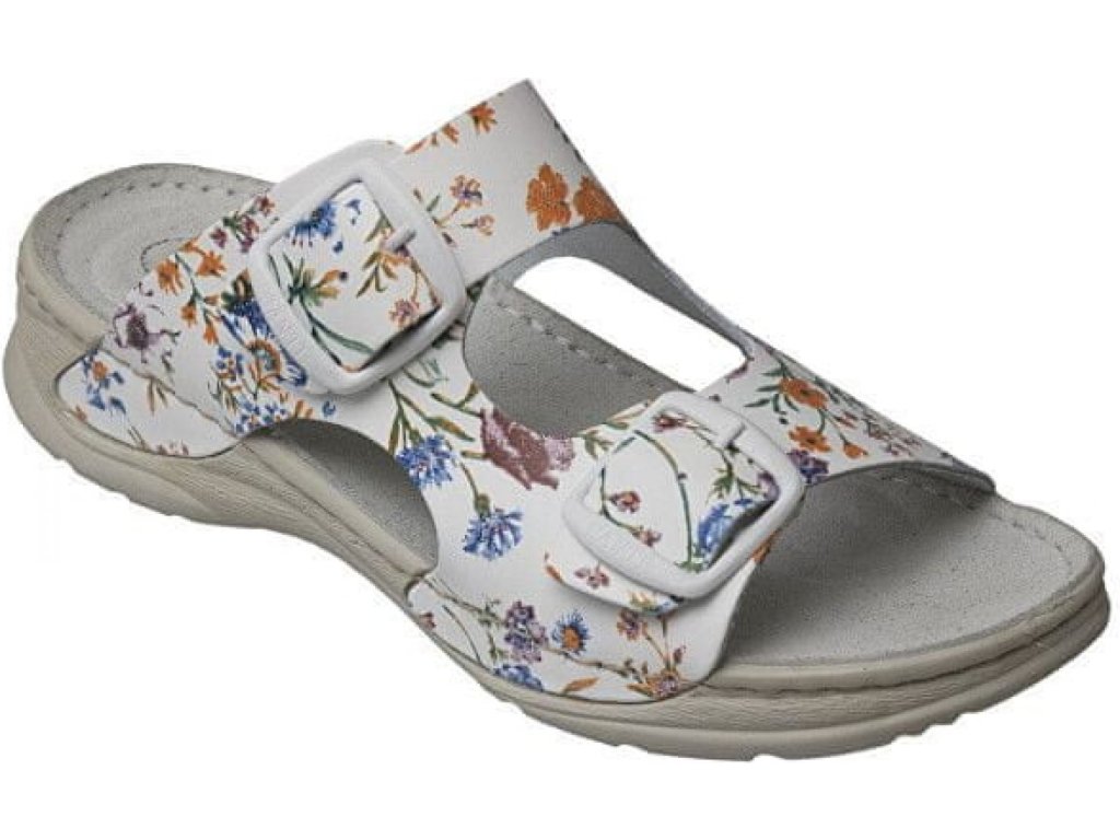 Dámské pantofle Santé s květinovým vzorem v bílé barvě jsou ideální volbou pro všechny ženy, které si cení pohodlí a zdraví svých nohou.