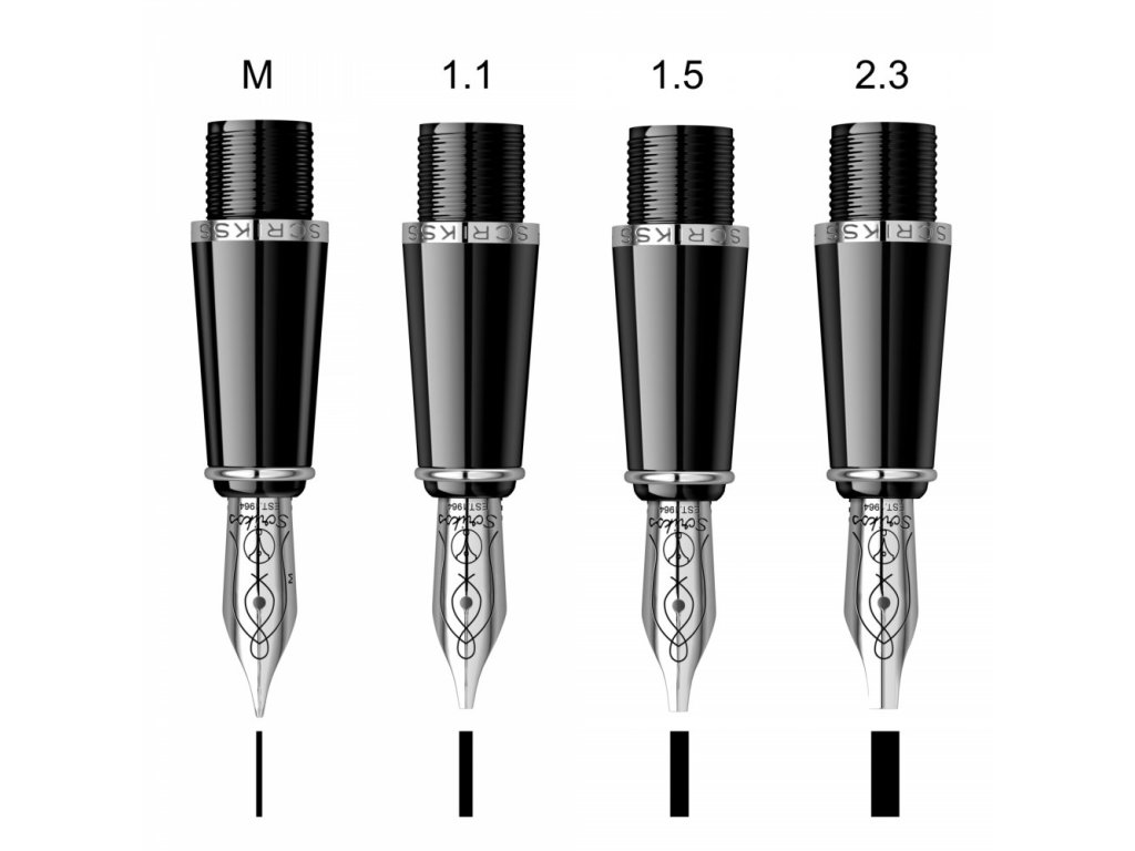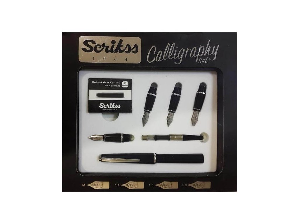 Kaligrafický set Scrikss obsahuje plnicí pero z černého tvrzeného plastu, 3 kaligrafické hroty (1.1, 1.5 a 2.3 mm), 1 standardní hrot M - střední, konvertor a balení černých inkoustových bombiček. Tato sada je vhodná jak pro ty, kteří s kaligrafií začínají, tak i pro zkušené.Doplňkové parametry