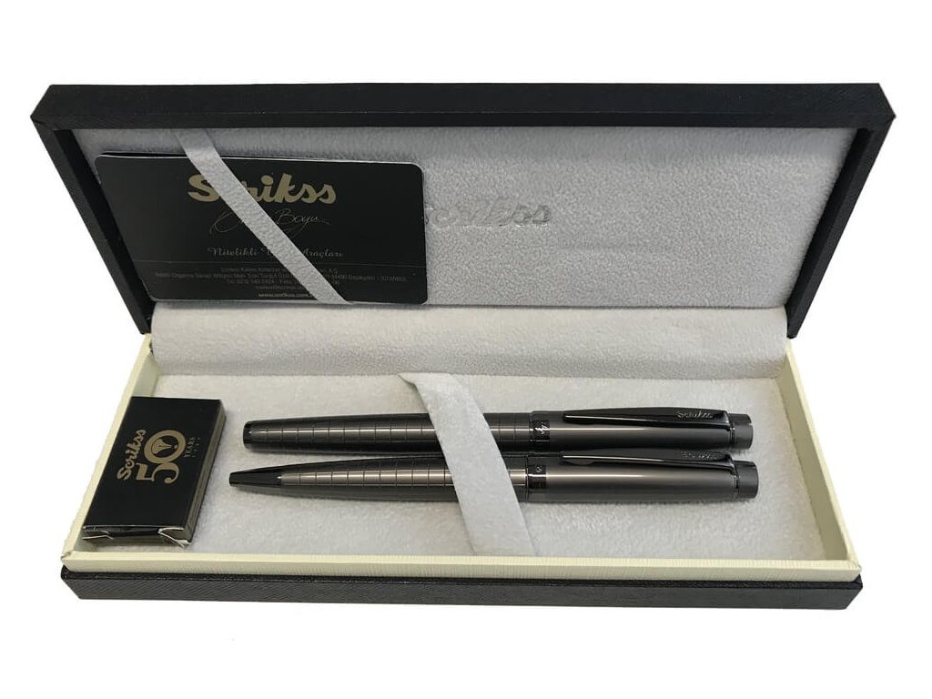 Dárková sada kuličkového pera a plnicího pera Honour v šedé lakové úpravě. Těla per jsou zdobena liniemi, které dotváří moderní vzhled per. Dodáváno v dárkové krabičce. Scrikss je turecká značka specializující se na výrobu luxusních psacích potřeb a doplňků. Její historie sahá až k roku 1963.Doplňkové parametry