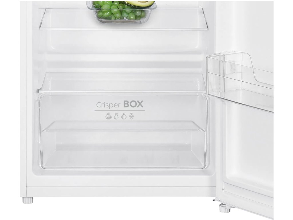 - Výsuvný Crisper box: Transparentní box pro uložení ovoce a zeleniny