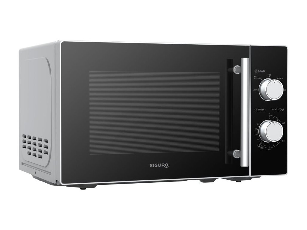 Mikrovlnná trouba Siguro MO-B130B Element vás osloví především svým jednoduchým ovládáním v podobě dvou mechanických otočných voličů – obsluhu této volně stojící mikrovlnné trouby zvládne úplně každý, děti i starší uživatelé. Na konec ohřevu vás upozorní zvukový signál. Robustní madlo umožňuje snadné otevírání dvířek.