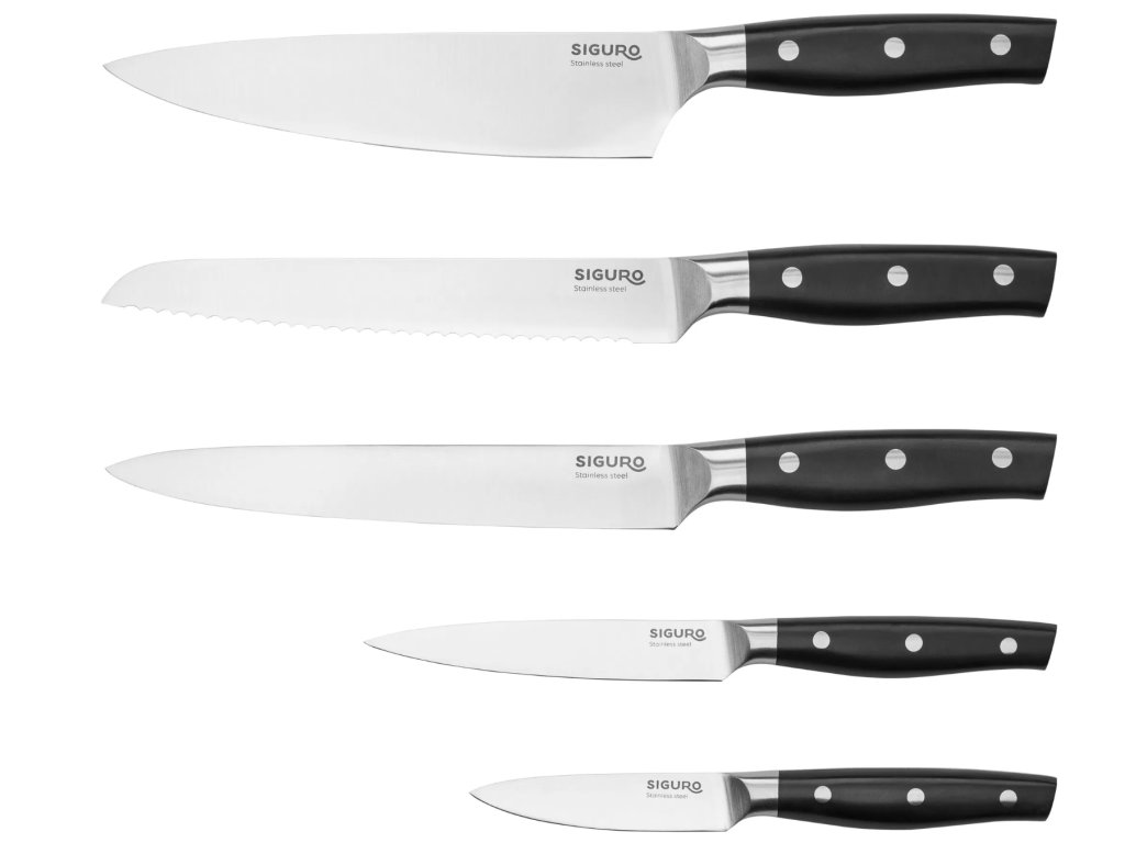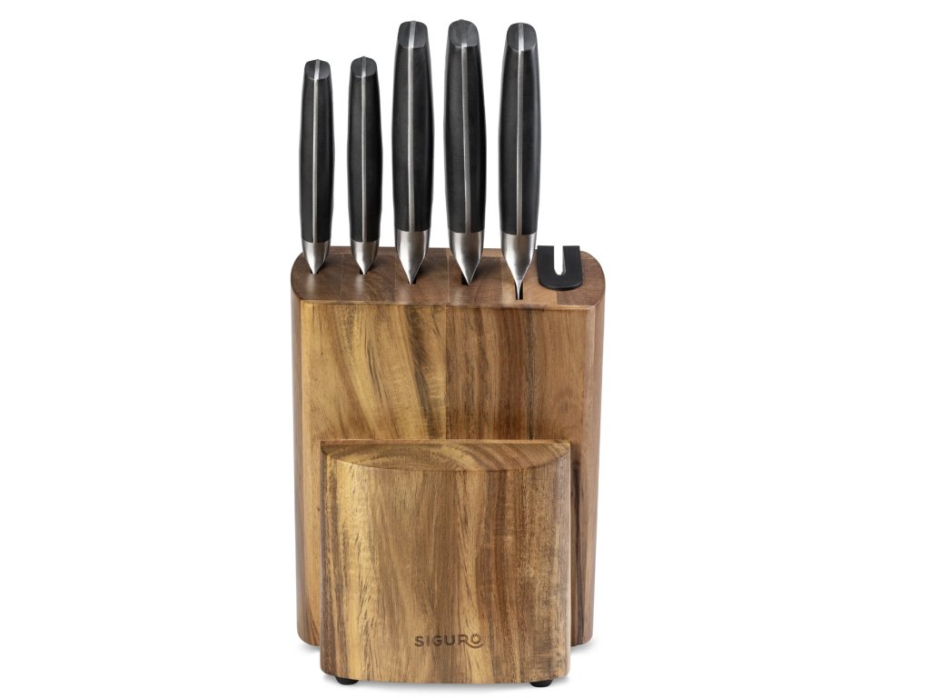 Sada nožů Siguro Sugoi – 5 nožů s blokem a integrovaným ostřičem