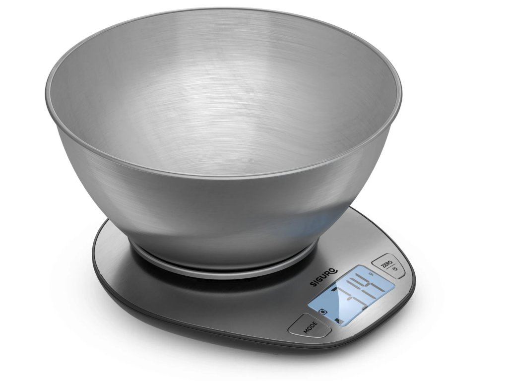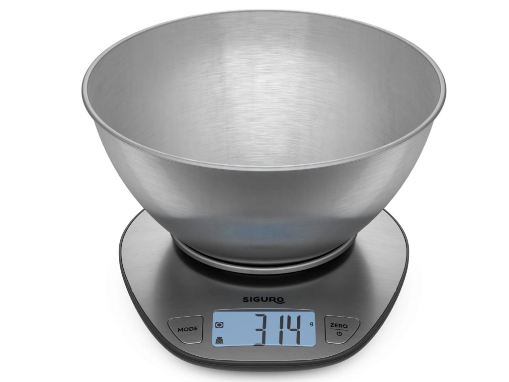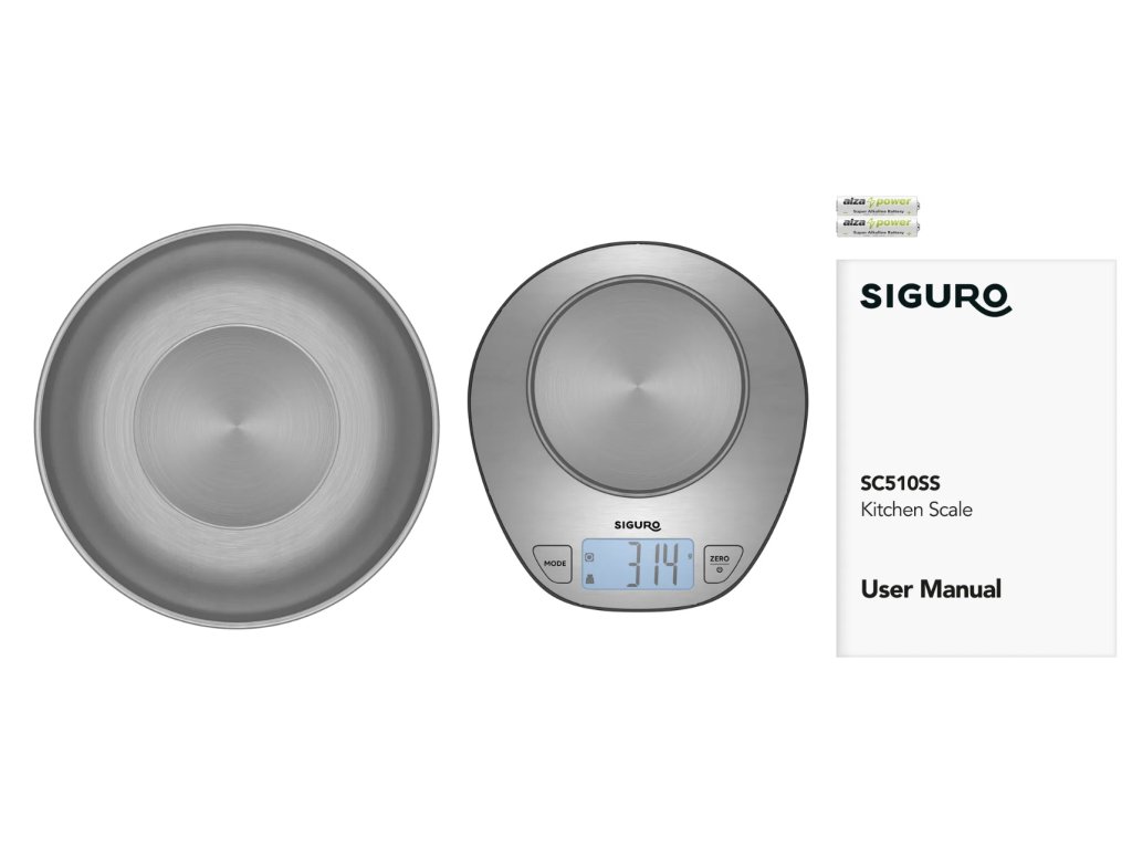 Součástí váhy je odnímatelná nerezová mísa o objemu 1,8 l, která je pevně uchycena díky vyvýšenému okraji vážící plochy, čímž se mísa neklouže dolů. S váhou Siguro SC510SS můžete nejen přesně vážit suroviny, ale také měřit objem tekutin, jako je mléko či voda, což výrazně rozšiřuje možnosti jejího využití v kuchyni.