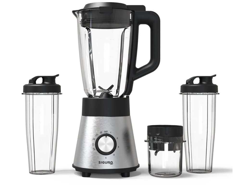 Stolní mixér Siguro TB-H650SS Vita Blend je dokonalým pomocníkem pro přípravu smoothie, koktejlů, polévek, ale také pro zpracování ořechů, ledu nebo tvrdé zeleniny. Tento mixér vás překvapí nejen svou vysokou výkonností, ale také jednoduchým ovládáním, pěticí přednastavených programů a důrazem na maximální bezpečnost. Mixér disponuje příkonem 1 000 W a dosahuje 20 000 otáček za minutu, což zaručuje efektivní a rychlé zpracování surovin. V balení najdete nejen odolnou skleněnou nádobu o objemu 1,5 litru s víkem, ale také dvě cestovní nádoby o objemu 0,6 l s víčkem, které můžete vzít na trénink nebo do práce. K tomu je součástí také mlýnek, ideální pro mletí kávových zrn, ořechů nebo bylinek.