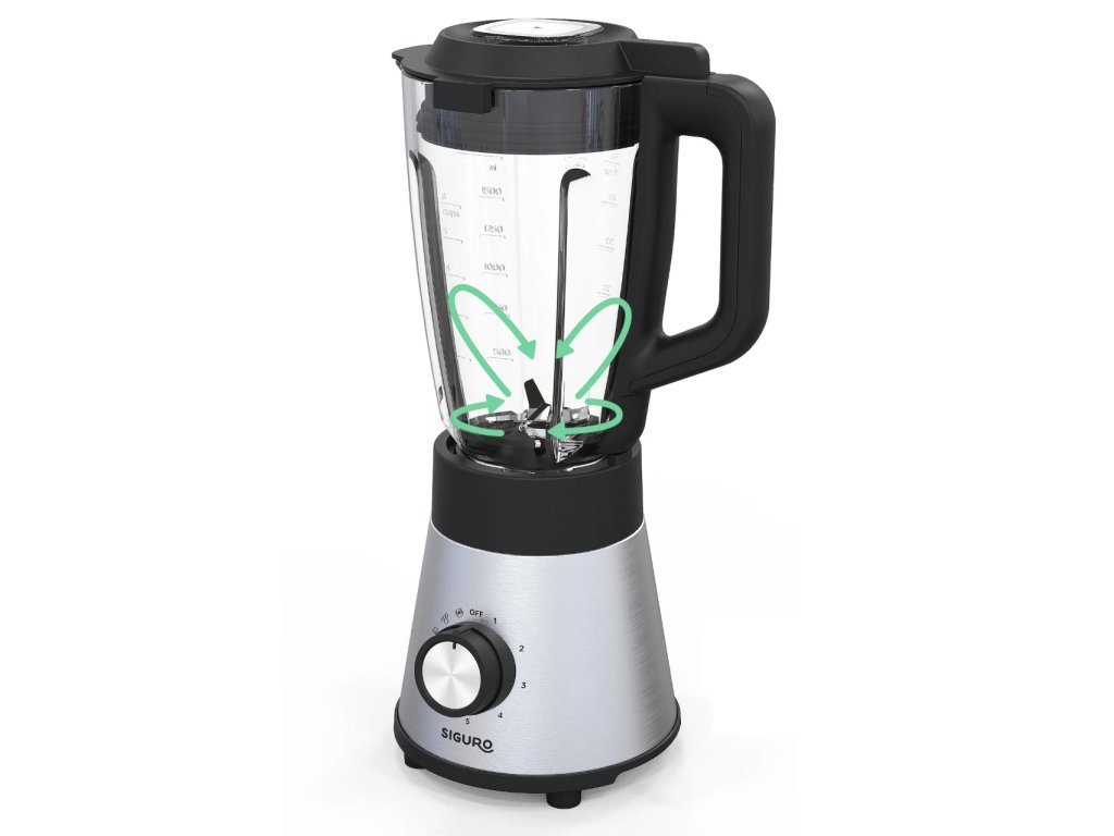 Mixér je vybaven odolnými noži s precizním ostřím, které mají optimalizovaný úhel sekání. Tyto nože vytvářejí spirálový vír, který zajišťuje dokonalé zpracování všech ingrediencí na jemnou konzistenci bez hrudek. Nože snadno nasekají i tvrdé přísady a zaručují vynikající výsledky každým použitím.