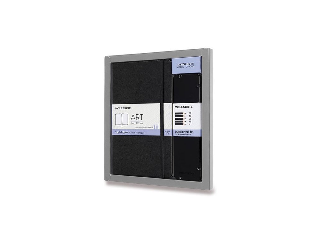 Skicář Moleskine je zápisník určený především na kresby, skici a malby. Má pevnou vazbu v kartonových deskách. Skicář obepíná pružná černá páska proti samovolnému otevírání. Obsahuje také praktickou vnitřní kapsu na vizitky a drobnosti vyrobenou z tkaniny a kartonu, textilní záložku a anglický leták s historií značky Moleskine. Rozměrově je skicář ve velikosti A5 (13 x 21 cm) a obsahuje 52 čistých listů. Gramáž papíru je 165 g/m2, papír neobsahuje kyseliny. Grafitové tužky Moleskine mají moderní hranatý tvar se zaoblenými rohy a jsou vyrobené z cedrového dřeva s FSC certifikací. Vysoce kvalitní 3mm tuha v 5 různých tvrdostech, různá inzenzita vhodná pro široké umělecké i praktické využití. Sada obsahuje pět designových grafitových tužek v kovovém boxu. Tvrdost - 6B, 4B, 2B, HB a H. Rozměry balení jsou 5,5 x 18 x 1,2 cm.Doplňkové parametry